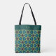 Monogram Blue Green Abstract Floral Chic Girly Tote Bag