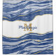 Monogram Blue Marble Agate Gold Glitter Shower Curtain