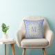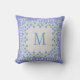 Monogram Blue Periwinkles Floral Border Faux Linen Cushion