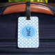 Monogram Blue Quatrefoil Pattern Luggage Tag