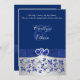 This romantic and elegant monogrammed royal blue and silver grey floral wedding invitation has a PRINTED ribbon and bow with a pair of PRINTED diamond jewel and FAUX glitter (simulated) joined hearts on it, with an ornate scrolled border on the back. There is also a quotation that says: "This day, I marry my best friend, The one I live for, laugh with, dream with, love". ***PLEASE NOTE there are no raised elements on this invitation. Everything is printed flat. ***PLEASE NOTE that if you change the fonts or size of the fonts, it may alter how your invitation prints. It will print the way you see it on your monitor, so if you have alignment issues, or sizing problems, please contact me for help. I will not see your invitation once you order it, and Zazzle will NOT edit anything (typos, alignment, etc.). If you require assistance or would like any other matching items, please email your request to niteowlstudio@gmail.com.