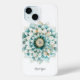 Monogram Blue Teal Gold Floral Mandala Case-Mate iPhone Case
