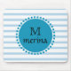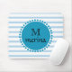 Monogram Blue Teal Gold Striped Circle Mouse Pad