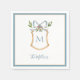 Elegant Monogrammed crest with blue bow and greenery napkins. Makes great hostess gifts.