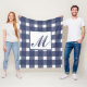 Monogram Blue White Gingham Pattern Fleece Blanket