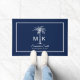 Monogram Blue White Palm Tree Personalized Doormat