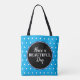 Stylish reversible white polka dots on sky blue background. Front of bag has large darker blue and black circles to personalise with your monogrammed initial in white text. Back of bag has the wording, Have a Beautiful Day. Leave wording, insert your own, or delete to only show large circle image pattern design. Fresh trendy geometric women's bag fashion for any season. Original designs © TamiraZDesigns. www.zazzle.com/tamirazdesigns