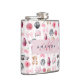 Monogram Blush Pink Retro Disco Ball Coquette Hip Flask