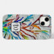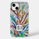 This colourful phone case is decorated with a unique abstract botanical mosaic and an elegant monogram.