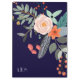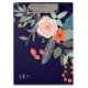 A colourful spray of graphic botanical flowers decorate this clipboard and it can be personalised with three monogram initials. The background is a rich navy blue.