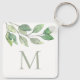 This botanical keychain is decorated with watercolor foliage in shades of green.