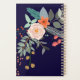 A colourful spray of graphic botanical flowers decorate this planner cover and it can be personalised with three monogram initials. The background is a rich navy blue.