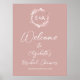 A simple chic floral faux foil monogram pink welcome sign for bridal shower. Easy to personalise with your details. Modern boho welcome sign for bridal shower editable, customisable, calligraphy handwritten font, simple, elegant.