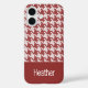 This stylish iPhone 16 case features a bold monogram design against a striking brown and white houndstooth pattern. Perfect for adding a personalised touch while offering durable protection for your device.