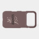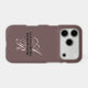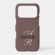 Elegant refined premium look chic lady iPhone case, personalizable customizable with monogram, initial letters and name. Classy feminine, trendy brown background, cocoa nuance, elegant champagne beige calligraphy script handwritten initial letters, and stylish black typography for the name. Beautiful simple monochromatic, minimalist minimal design, and useful, for protecting your cellphone or as a thoughtful custom electronic tech accessory gift for her, under 35 dollars For personal use or as a professional business phone case. Suitable as a birthday, Mother’s Day, Christmas, graduation, even retirement present. Or for your company employees for example. Soft feminine luxury, fashionable lifestyle gift for women.