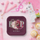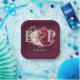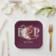 Monogram Burgundy Blush Floral Wedding Party Paper Plate