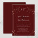 An elegant monogram wedding invitation featuring a gold (non-foil) decorative leaf elements and a burgundy background. Simply add your information (including your monogram), add this invitation to your cart, and have a wonderful wedding.