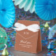 Simple wedding favour boxes featuring a autumn burnt orange background, your initials, the saying "thank you", your names, and the wedding date.