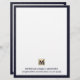 Elevate your professional correspondence with our Monogram Business Letterhead. This refined design features a brushed gold monogram emblem showcasing your company initial, complemented by your name, address, and contact information in classic navy typography. The white background, accented by a rich navy blue frame, exudes sophistication and attention to detail. Perfect for estate planners, attorneys, and advisors, this letterhead adds a touch of elegance to your communications, helping you make a memorable impression on clients and partners. Enhance your brand image and communication style with this premium letterhead design.