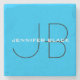 Monogram Capri Blue Minimalist Modern Name Stone Coaster
