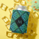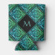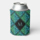 A monogram can cooler with a Celtic knot repeated design in blue/green/teal colours. Customise it and send a personalised gift!