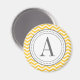 Personalised monogram magnets are great for the home or office. This one features a chevron pattern background and decorative round frame.