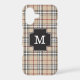 Monogram Chic and trendy tartan plaid in Tan, Red, Black, and White vertical and horizontal stripes designer modern iPhone case template. Easily personalize this monogram with another monogram by changing the letter in the text box. If you would like two initials or 3 initial monograms simply click "personalize this template" and add text.