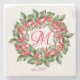 Monogram Christmas berries wreath stone coaster makes a great gift.