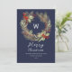 Monogram Christmas Greenery Wreath on Navy Blue Holiday Card