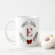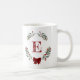 Monogram Christmas Wreath Coffee Mug with red and green winter botanicals and pretty red bow.