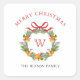 Elegant & personalised holiday stickers featuring Hand- painted Watercolor wreath with winter greenery and oranges with your Monogram in the centre.