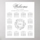 Classic Dark Grey Monogram Wreath Floral Wedding Seating Chart