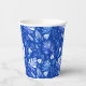 These elegant festive paper cups are decorated with a watercolor cobalt blue tropical leaves pattern and a double-framed monogram using a stylish script font.