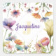 Monogram Colorful Wild Flower Illustrated Square Sticker