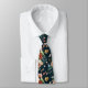 Monogram Colourful Floral Pattern on Oxford Blue Tie