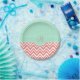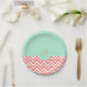 Monogram Coral Chevron with Mint Polka Dot Pattern Paper Plate