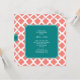 Monogrammed coral pink quatrefoil pattern with teal. Pink quatrefoil patern on white. Bridal shower invitations.