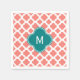 Monogram Coral Pink Quatrefoil Pattern with Teal Napkin