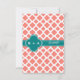 Monogram Coral Pink Quatrefoil Pattern with Teal RSVP Card
