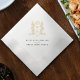 Monogram heart crown with berries and leaves entwined crest wedding napkins in gold colour on white with black text. Personalise with your own initials and couples name. Original hand drawing and design by Sarah Trett for www.mylittleedenweddings.com