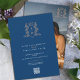 Monogram heart crown with berries and leaves entwined crest wedding portrait invitation in rose gold, white and rich dark blue. Personalise with your own initials and wedding details. Original hand drawing and design by Sarah Trett for www.mylittleedenweddings.com