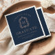 Monogram Crest Navy Blue Rose Graduation Party Napkin