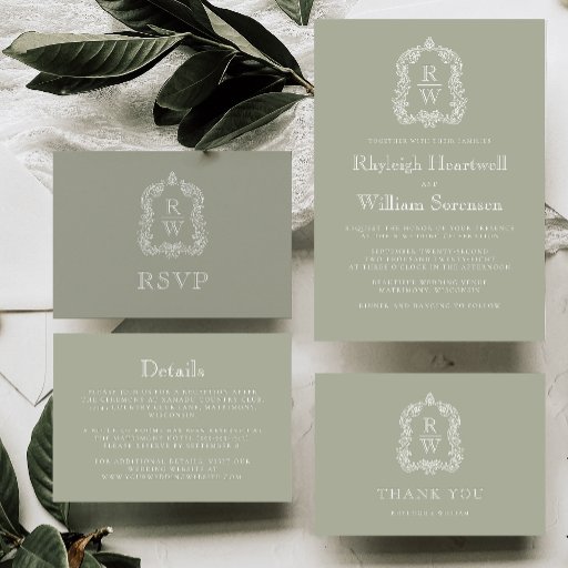 Classic Monogram Crest Sage Green Wedding SuiteDesigned by Akhates Designs