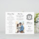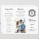 These trifold wedding programs come as a flat sheet of paper to be manually folded. The elegant monogram crest has the initials of the bride and groom in fancy script font on the front. The programs are perfect for long ceremonies, with the order of ceremonies on the three inside flaps. The outside has the wedding party, thank you note, and a photo of the happy couple.