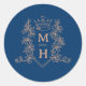 Monogram crown crest blue and rose gold wedding classic round sticker