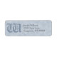 This design features an original artwork made to look like a natural blue parchment. This template features a spot for your own monogram is bold blue-grey gothic lettering and a spot for your name and address in a classic italic font. A beautiful, classic look. Personalise these return address labels with your own initial, name and address for your own beautiful labels.
