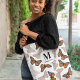 This design features a monogram, watercolor, custom tote bag with botanical butterfly orange theme with initial and name, personalised, butterflies