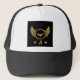 Customisable trucker hats where you can choose image as you like. Beautiful and comfortable for all. White and Black colour hat with Elegant Gold Eagle wings image J Initial letter printed.