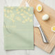 Monogram Custom Name Leaves Daisies Pastel Green Tea Towel