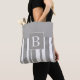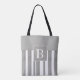 Create a monogram custom personalised stylish tote bag with a grey and white stiped design in pastel colours. Art copyright Ann Powell all rights reserved.